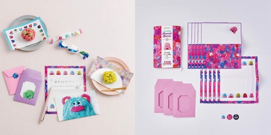 平安時代から使われてきたとされる懐紙は、その名のとおり懐に忍ばせて文をしたためたり、ティッシュやハンカチ代わりにも使われてきたスーパーマルチアイテムです。新作は、そんな懐紙をカワイく進化させました。吸水・吸油性にすぐれ、ぬれてもやぶれにくい和紙なので、食べ物をのせたり、包んだりするのにも適しています。手紙にも使えるミニ封筒とシールが付いているので、柄をいかしていろいろなアレンジが楽しめます。