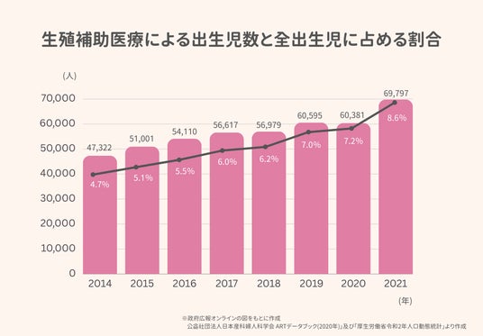 日本産婦人科学会が2021年に発表した統計によると、11~12人に1人が体外受精で生まれているとされています。また、2022年4月から始まった不妊治療の保険適用により、不妊治療に対するハードルも下がっており、不妊治療の受診者数も増えています。
