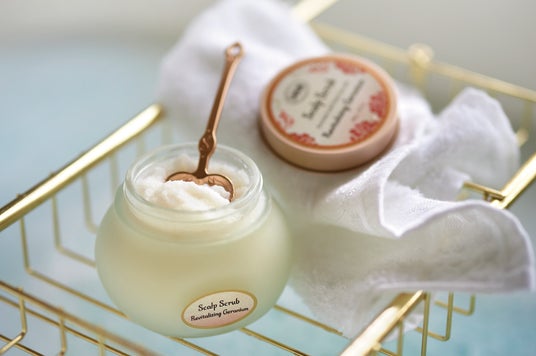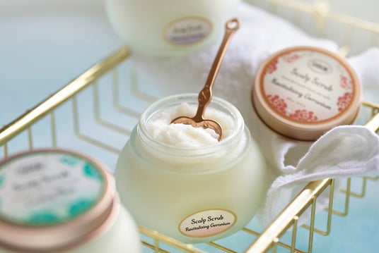 死海の塩*1 とオーガニックゼラニウム*3 でダメージをケア*4 し、ハリのある髪へと導く「ヘッドスクラブ リプレニッシング」は、心を明るく高揚させるようなフローラルグリーンの香り。