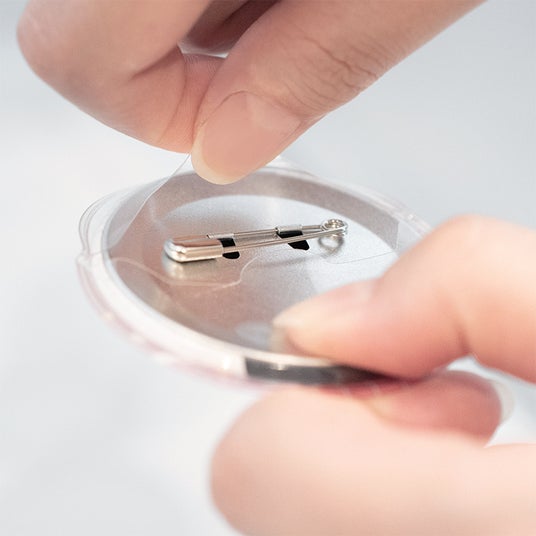 使い方はとっても簡単! 裏面のスリットから缶バッジを入れるだけ。