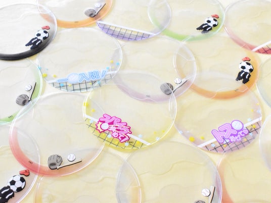 今回は、スポーツモチーフの全25種が仲間入り。野球・サッカー・バレーをイメージしたデザインで、アニメやマンガなどキャラクターの缶バッジはもちろん、スポーツ選手など人物の缶バッジにもおすすめです。推しのキャラカラーや選手のチームカラーに合わせて選べます。