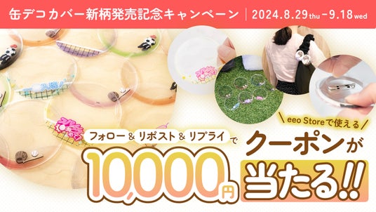 今回の缶デコカバー新柄発売を記念して、8月29日(木)~9月18日(水)の期間中、eeo Store onlineの公式Xアカウント(@eeo_store)をフォロー、対象ポストをリポスト、さらに「#缶デコカバーeeo」を付けてリプライしてくれた方の中から、抽選で5名様にeeo Store onlineで使える1万円クーポンをプレゼント! ぜひこの機会にオトクに推し活するチャンスをGETしてください。