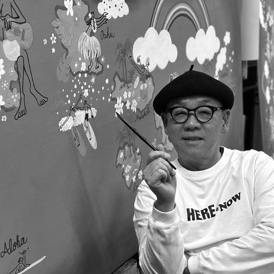 1962年5月22日大阪生まれ。アーティスト。子どもの頃から絵を描くこと、サーフィン、ファッション、音楽が大好き。1992年30歳の誕生日にEnjoy SURFのロゴマークをデザイン。1997年カリフォルニアで初のエキシビジョンを開催。2023年弘法大師御誕生1250年記念の企画展として高野山金剛峯寺にて「こころ」豊田弘治個展を開催。カラフルでピースフルな絵画作品の他、各国様々な企業やブランドとのコラボレーションを通じて独自の世界観を表現し続けている。