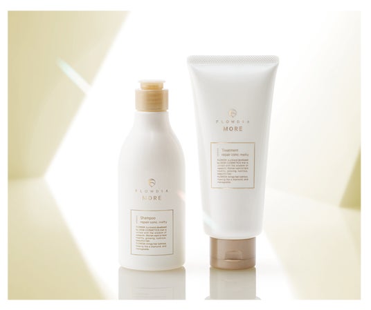 日本人女性の約75%は髪悩みを持ち、その悩みを「解決したい!」と強く想っている現代人。さらにその悩みは多岐にわたり、パーマやカラーなどで起こるダメージやエイジングによるクセ・うねり、日々の生活でも起こる枝毛や切れ毛、さらには長年蓄積されたダメージ履歴など、複雑かつ複数の悩みを抱えています。そんなすべての方の髪悩みを解決すべく、”髪の結合”と”撥水性”に着目。独自処方の5つの内側ケアと結果を出す2つの外側ケアでサロントリートメント級のヘアケアを実現。ダメージ要因や世代問わず美しい髪へ導きます。また、ヘアケアだけでは叶わなかった悩みを解決すべく、サロンケアアイテムとして髪強度を保ち、ダメージ要因に左右されず、マルチに補修するサロントリートメント、ダメージを抑えながらクセ・うねりにしっかり作用するストレートシリーズをラインナップ。『FLOWDIA MORE(フローディアモア)』で美しい髪になりたい方の願いを叶えます。