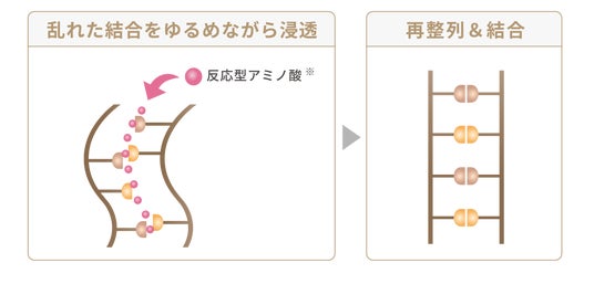 ダメージを受け欠損した結合を補修することで、しなやかな髪本来の強さを導くとともに、毛髪内部に結合水を増やし、うるおいに満ちたハリのある仕上がりを叶えます。