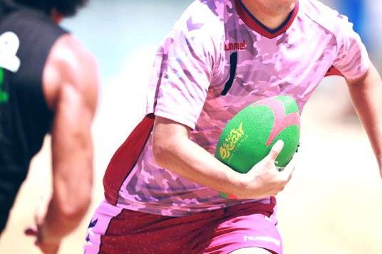 国際ビーチラグビー協会が設立した1990年に生まれた日本発祥のビーチスポーツです。ラグビーとアメリカンフットボールの両方の要素を組み合わせたもので、競技は5人対5人で行われます。