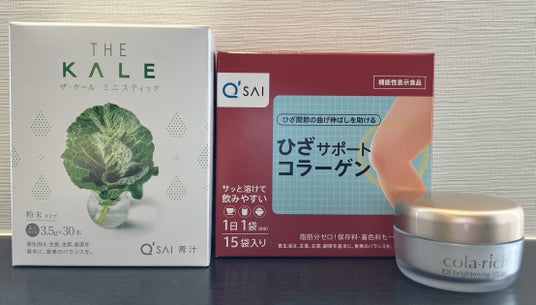 カラダもココロも健康で前向きに年齢を重ねるためのアイテム、当社で人気の3商品を“ウェルエイジングセット(ザ・ケール ミニスティック(左)、ひざサポートコラーゲン(中央)、コラリッチ EX ブライトニングリフトジェル(右))”を、優勝賞品として提供いたしました。