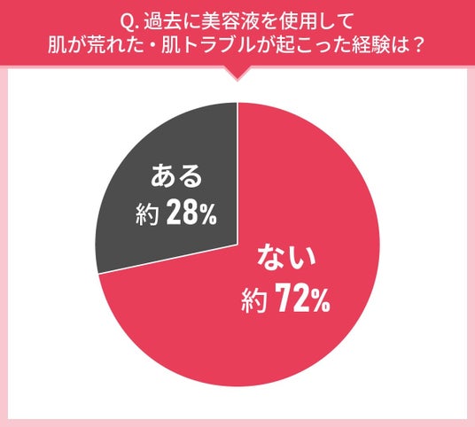 約72%の人が肌トラブルの経験はないと回答している一方で、約28%の人があると回答しました。少なからず合わない美容液を使うと肌トラブルが起こる場合があるということですね。