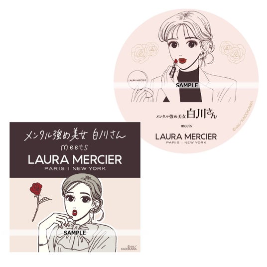 さらに、同期間中に ローラ メルシエの商品を1品以上お買い上げのお客さまに、「メンタル強め美女白川さん」コラボビジュアルが入った特製ステッカーをプレゼント!(2種より1種選択。イセタン ミラー・meecoではランダムでのお渡しとなります)