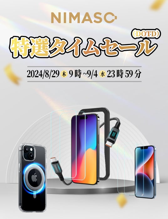 NIMASO JAPAN株式会社Amazonの特選タイムセール「DOTD」が2024年8月29日(木)9時から9月4日(水)23時59分まで開催されます!NIMASOの対象商品は、この期間中、特別セール価格でお買い求めいただけます。