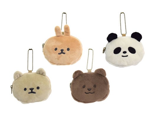 やわらかな起毛素材にかわいいお顔が刺繍されています。イヤホンケースやリップ、目薬、小銭などの収納にピッタリのサイズ。カバンなどにひっかけられるボールチェーン付き。