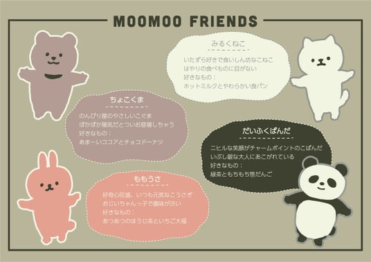 色・デザイン: みるくねこ/ももうさ/ちょこくま/だいふくぱんだ