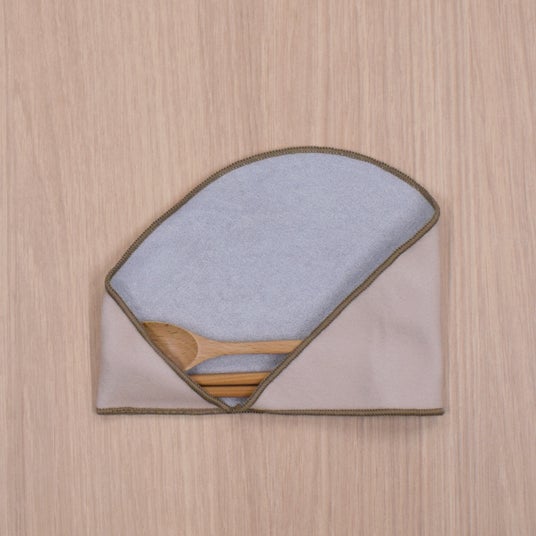 - 同じ素材のカトラリークロスも同時発売。くるっとくるむだけで持ち運べます。お箸とスプーンがぴったり入ります。ご自宅のお箸やスプーンを持ち運びできるのが便利です。