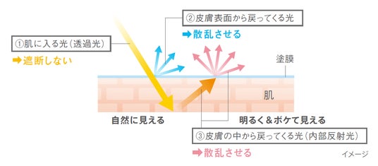 塗膜の光学制御効果で、入ってくる光は遮断せず、戻ってくる光を散乱させます。