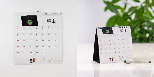 2006年に登場し、発売から20年目となる「ほぼ日ホワイトボードカレンダー」。いっぱい書けて、スイスイ消せる、全面ホワイトボード仕様のカレンダーとして、全国ロフトのカレンダー売り場で19年連続1位を記録しています。2025年版は画家の山口一郎さんが「月の数字」を描いたデザインと、任天堂株式会社から発売されたスーパーファミコ ン(TM)用ソフト『MOTHER2 ギーグの逆襲』のデザインが登場します。
