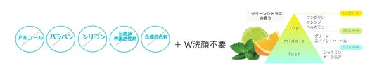 お肌に優しい5つのフリー処方+W洗顔不要。日本人になじみ深い柑橘の香りを基調にした温かみと深みのあるグリーンシトラスの香りが、心とお肌を優しく包み込みます。