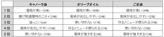 【表1】各食用油の不満点
