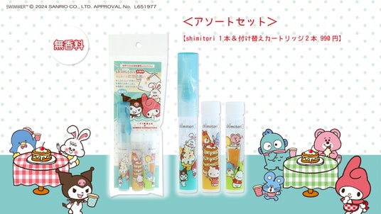 携帯できる衣類の応急処置用シミとりペン「shimitori」からスイマーサンリオキャラクターズコラボデザインが登場!