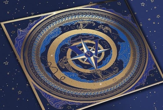 ユリシーズのシンボルを思わせる夢のような地中海の旅へ。無限の海の深い青と星空が融合。黄金の螺旋が、波間を行き交うセイレーンや船の中を幻想的な航海へと導きます。