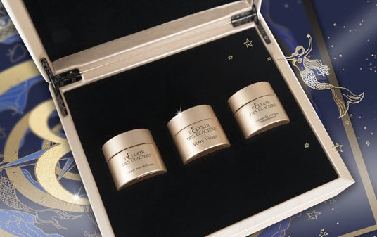 エレガントなプレシャスウッドのコフレには、レリクシール デ グラシエの特別なコレクションから3つのアイコニックなフェイスクリームが入っています。スイスアルパインガーデンへの旅、蜂の巣の中を愛らしく散歩する旅、チョウザメの世界への深海ダイビング。これらのトリートメントのひとつひとつが、ホリデーシーズンへの道しるべとなるのです。