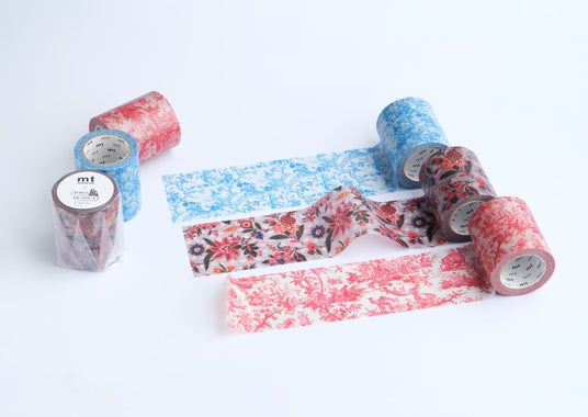 初めてのコラボレーションでは、植物や動物が描かれたデザインをマスキングテープに表現いたしました。歴史ある不朽のテキスタイルデザインと和紙の風合いのコラボレーションをお楽しみください。