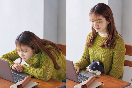 「ふんばるず」を落とさないよう、机とおなかの間にしっかり挟み込むため、自然と背筋が伸び、良い姿勢に。ついつい“猫背”になってしまうあなたも、シャキッとした背筋に早変わり。