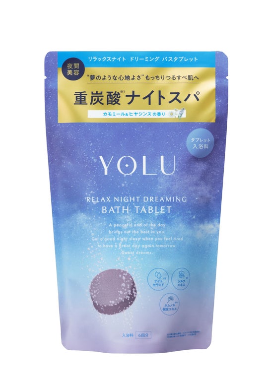 夜間美容ブランドYOLUから新登場の「ヨル カームナイトドリーミング バスタブレット」は、その名の通り幻想的な湯色を楽しめるのが特徴で、ちょっぴり贅沢な気分も味わえるリラックスタイムのお供にぴったりの浴用化粧料です。⾚ちゃんの時にみたお母さんのおなかの中の⾊で、潜在的に落ち着く⾊と言われているパステルピンクと、ブルー要素を混ぜ込んだラベンダーのような⾊味で気分を和らげると言われているパステルパープルの2色展開です。