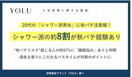 【9月3日は睡眠の日】売上シェア日本1位*のYOLUが入浴習慣に関する調査を実施 20代の「シャワー派男女」に秋バテ注意報!シャワー派の約8割が秋バテ経験あり