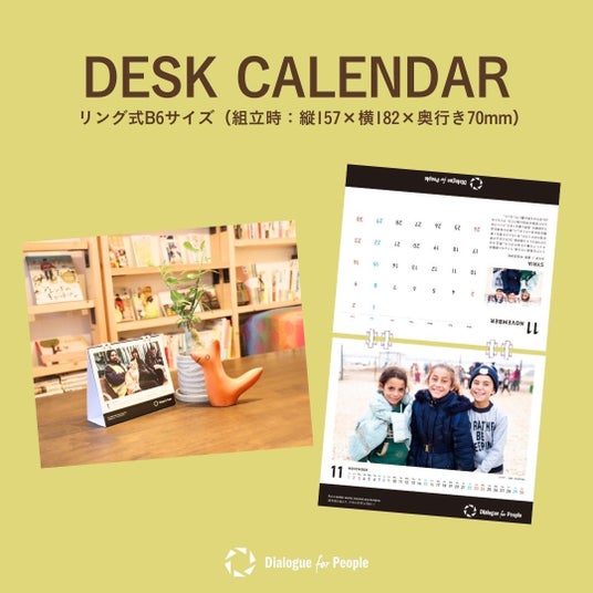 認定NPO法人Dialogue for People(D4P)パレスチナ、シリア、ウクライナ、東ティモールなど...取材に赴いた様々な国・地域から、日常のひとコマを写真とエピソードでお届けします。2種類(壁掛け・卓上)のサイズ展開 、数量限定です。