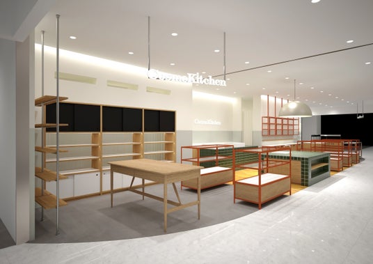 オーガニックラバーが住むパリのアパルトマンの”KITCHEN”をイメージした店内は、今を象徴する近代的かつ機械的な素材や色を取り入れつつ、店内の各所にはDIYを感じる素材や仕様があしらわれ、手仕事を感じるディテールをエッセンスとして加えることで、コスメキッチンが当初から大切にしているフレンドリーで安心する空間を表現しています。ほっとするような居心地と、新鮮なワクワク感のあるお買い物をお楽しみいただけます。
