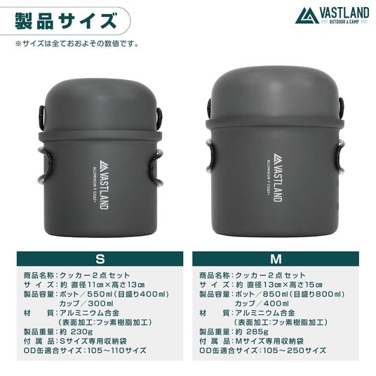「キャンプアクティビティを通じて、広がる幸せ」をブランドミッションに、キャンプギアブランド「VASTLAND(ヴァストランド)」を展開するVASTLAND株式会社(本社:兵庫県姫路市/代表:田中悠貴)は、荷物は最小限に抑えたいが、キャンプ飯は楽しみたい人に向けて「クッカー2点セット」S・Mサイズを、2024年9月14日(土)にAmazonと楽天市場で発売します。