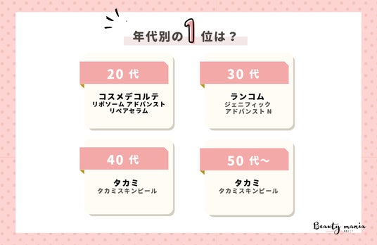 一方で、40代や50代以上では「タカミのタカミスキンピール」が人気で、31.3%の40代、37.5%の50代以上がこの商品を選んでおり、低刺激で長期間の使用でも肌にやさしいという点が評価されています。