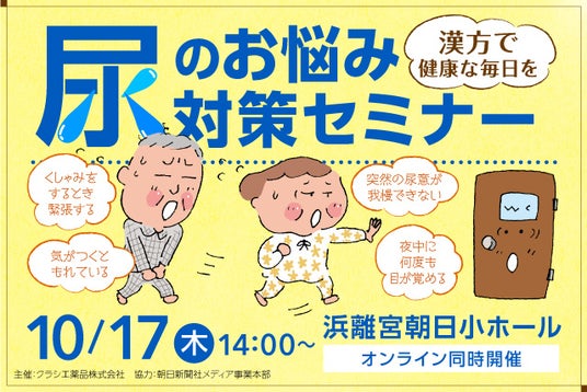 漢方薬を中心とした一般用医薬品と医療用医薬品を販売するクラシエ薬品株式会社は、当社が制定する11月24日の「いい尿の日」に合わせて、「漢方で健康な毎日を 尿のお悩み対策セミナー」(定員300名、参加無料)を、10月17日(木)に浜離宮朝日小ホール(東京都中央区)にて開催します。本日9月9日(月)より、特設サイトにて参加申込の受付を開始します。なお、本イベントはオンラインでの視聴(定員800名)も可能です。