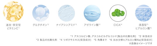 速攻・安定型ビタミンC*7/グルタチオン*2/ナイアシンアミド*8/アゼライン酸*2/CICA*10/浸透型*4ヒアルロン酸*11