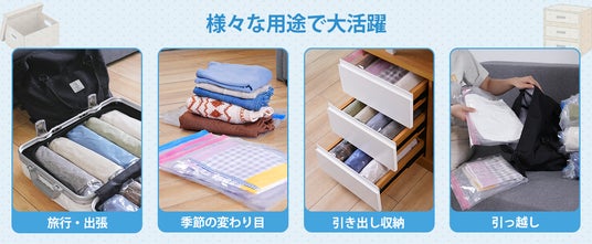 かさばる衣類を最大80%圧縮!収納スペースを有効活用
