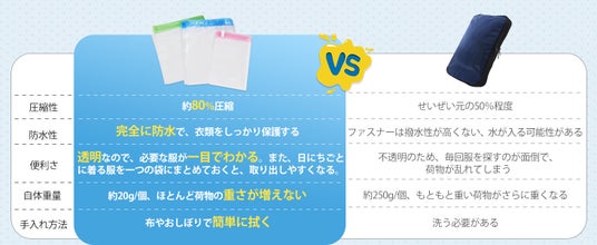 衣類を守る高耐久・高密封の圧縮袋