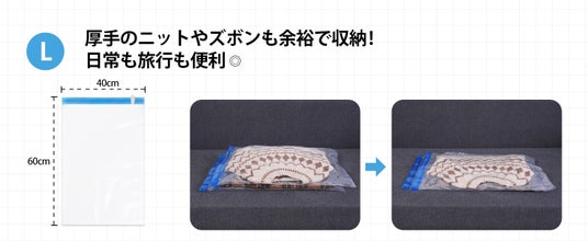 Lサイズ(40×60cm):トレーナーやズボンなどの中型衣類に最適。