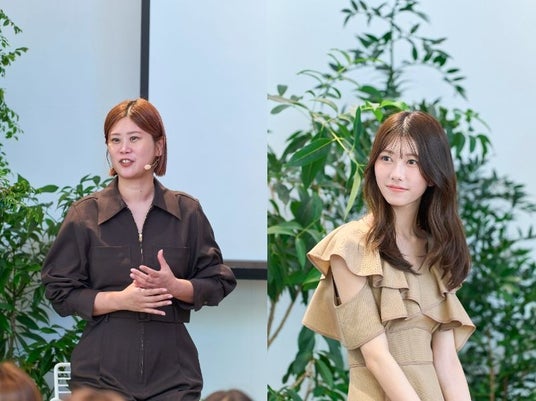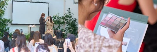 発表会では共同開発者であるGeorgeさんが登壇。特別ゲストのAKB48メンバー千葉恵里さんがモデルを務め、新商品のアイパレットを使ったメイクのデモンストレーションやトークセッションをはじめ、韓国本社から駆け付けた開発担当者らがブランド紹介・製品説明を直接行うなど、オフラインイベントならではのコンテンツで、熱心にメモを取る参加者の姿も見かけました。