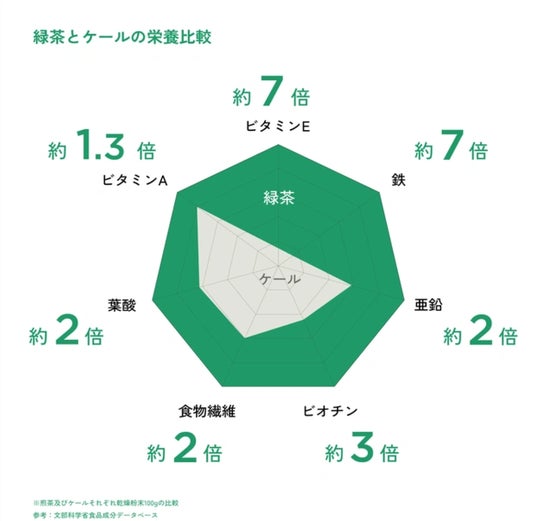 緑茶には、野菜の王様とも言われるケールと同等以上の多くの栄養素が含まれていることがわかっています。