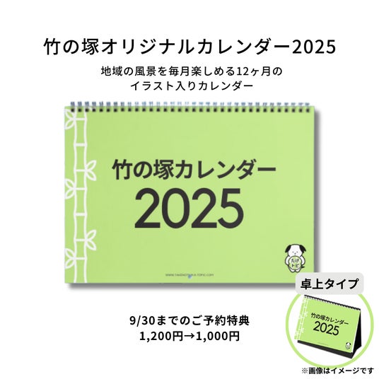 竹の塚情報局たけトピ(東京都足立区竹の塚、代表:高橋直子)は「生活者視点で竹の塚の魅力を発信する」をコンセプトにした通販サイト「たけトピストア」にて『竹の塚カレンダー2025』の予約販売を9月16日(月)より開始いたしました。