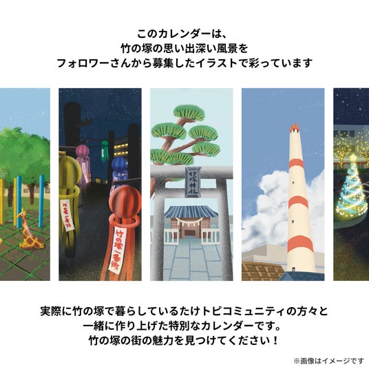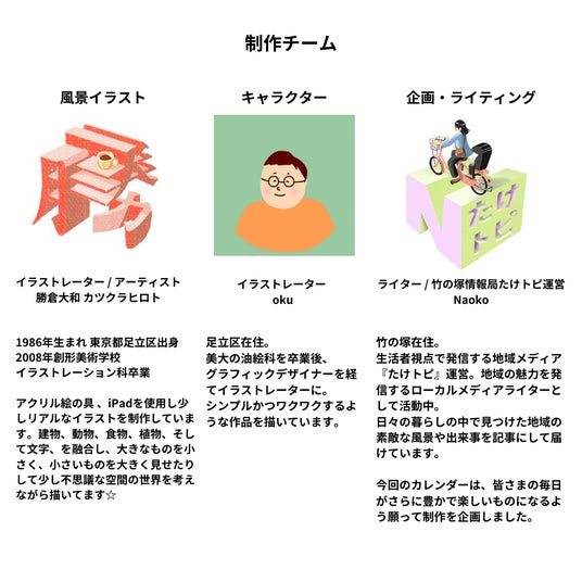 地元イラストレーターと生活者の視点で作り上げる「竹の塚カレンダー」予約販売開始!四季折々や思い出の風景とスポットを紹介