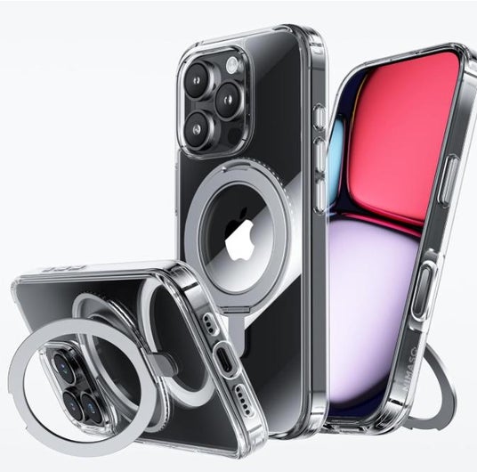 このケースは、360°回転スタンド付きで、縦置き・横置きが自由自在。MagSafe対応で、38個の強力なN52マグネットを内蔵し、充電やアクセサリーの保持も安心です。透明度の高いポリカーボネート素材と黄変防止のTPU素材を使用し、長期間美しい外観を保ちます。四隅にはエアバッグ保護が施され、耐衝撃性も抜群です。