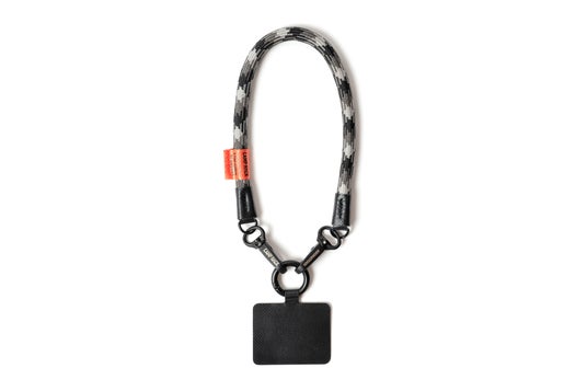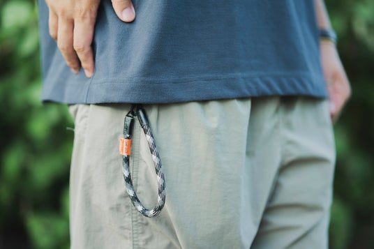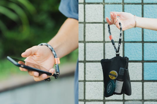輪っかを伸ばして、片方をスマホに、もう一方を服やザックに固定すればリーシュコードとしても使えます。