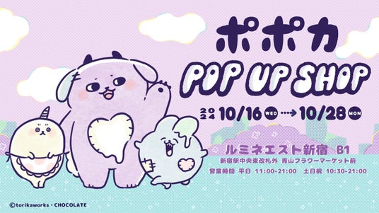 CHOCOLATE Inc.(本社:東京都渋谷区、代表取締役:渡辺裕介、以下チョコレイト)は、ちょっぴり不器用でくいしんぼうなモンスターのキャラクター・ポポカの初となる期間限定ポップアップ「ポポカPOP UP SHOP」を、10月16日よりルミネエスト新宿・B1新宿駅中央東改札外 青山フラワーマーケット前で開催することをお知らせいたします。