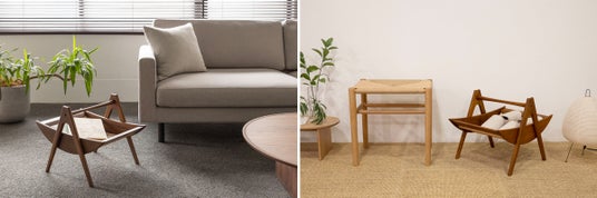 今回復刻したマガジンラックは、デザインはオリジナルに忠実に、カラー展開は現代の暮らしにあわせて、木目を生かしたナチュラル、ライトブラウン、ダークブラウン、グレーの4色展開に。木調の床に置くことをイメージしつつ、素材や色調とのフィット感で選びました。また、雑誌や本などはもちろん、子どものおもちゃ入れやPC置きなど用途もさまざま、ご購入されたお客様が自由に楽しんでいただきたいと思っています。