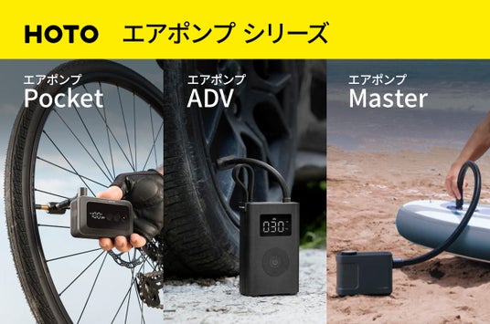 生活をデザインするツールブランド HOTO(ホト)の日本総代理店、株式会社セキド(本社:東京都港区、代表取締役:大下貴之)では、2024年10月31日(木)より HOTO JAPAN 公式ストアにて、新製品の「HOTO エアポンプシリーズ」を販売します。 255gでコンパクトながら素早く正確に入れられる自転車用携帯ポンプ「HOTO エアポンプ Pocket(ポケット)」、最大圧力150psiで1回の充電で最大10本の自動車タイヤを膨らませられる「HOTO エアポンプ ADV(アドバンス)」、カヤックやサップボード、ベッド、テントなど大容量にも対応した「HOTO エアポンプ Master(マスター)」が新登場。HOTO のエアポンプシリーズで、秋のアウトドアを快適に楽しみませんか?