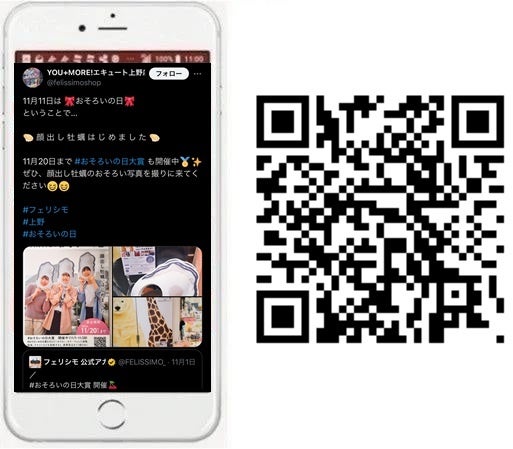 フェリシモが展開する、ユニーク雑貨ブランド「YOU+MORE![フェリシモユーモア]」の関東唯一の常設店「エキュート上野店」は、記念日「おそろいの日」に合わせ、11月2日より「顔出し牡蠣はじめました」と、ユーモアあふれるフォトプロップスを店内に設置しています。SNSで話題を集めるYOU+MORE!のアイテム「なぜかかわいい もっちりクッション抱っこ牡蠣」をモデルに制作したグッズで、顔を出しをして写真を撮って楽しむことができます。フェリシモが11月20日まで開催している、大賞は3万円分のお買い物券がもらえるイベント、「#おそろいの日大賞」の紹介も行っています。