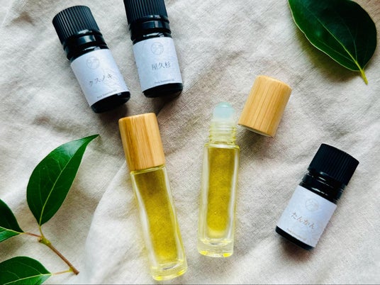 屋久島の精油でロールオンタイプのオリジナル香油を作るワークショップです。