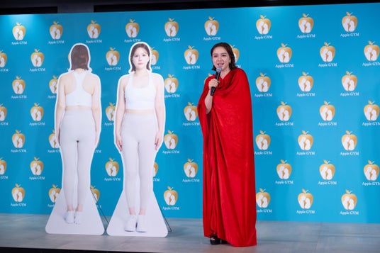 発表会ではその成果をお披露目するため、赤いマントを纏ってステージに登場。ボディメイク開始前のご自身の等身大パネルを前に、「さらに美しくなったので皆さんにお披露目するのがすっごく楽しみ」と、お披露目に前向きな姿勢を見せました。