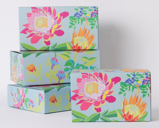 ハーブの上を飛び回るカラフルな鳥たちが、ギフトに込められた想いを乗せ羽ばたいている様子を表現しています。